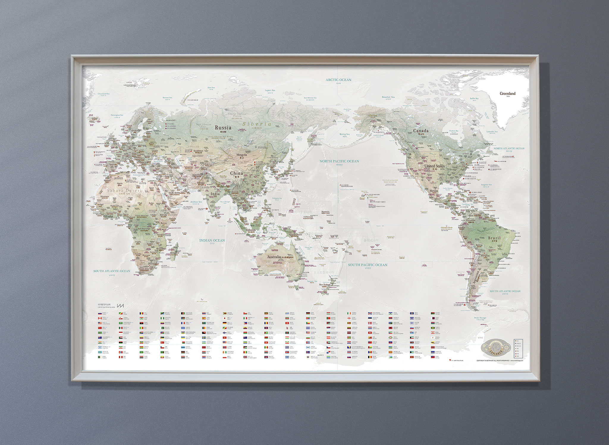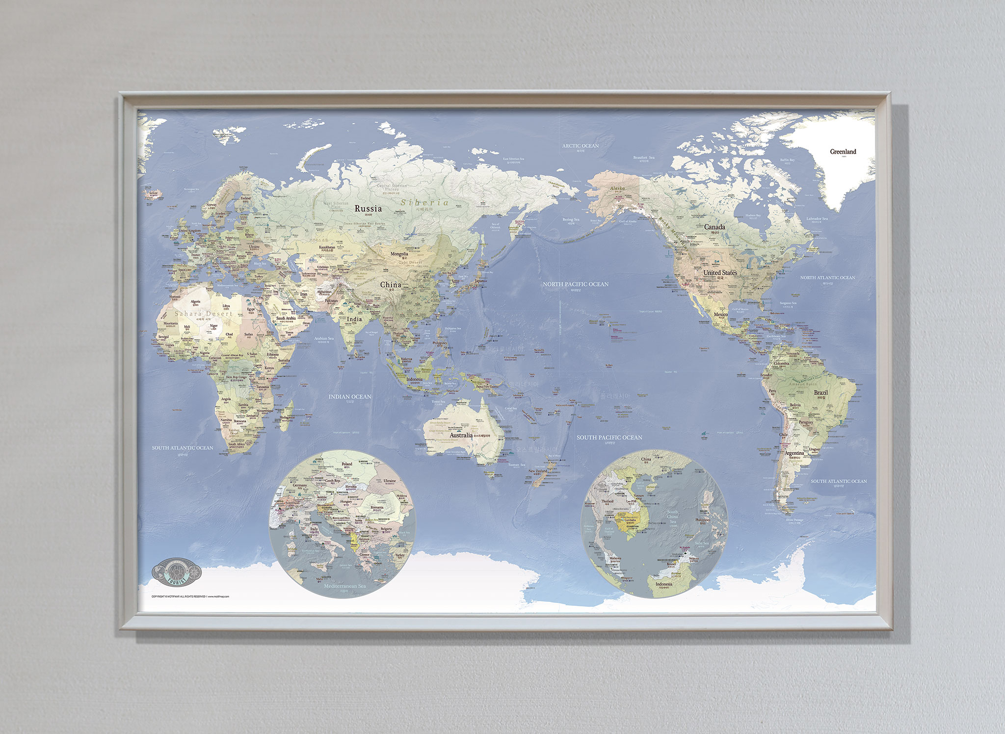 여행을 위한 블루톤 세계지형지도 / 밀러도법