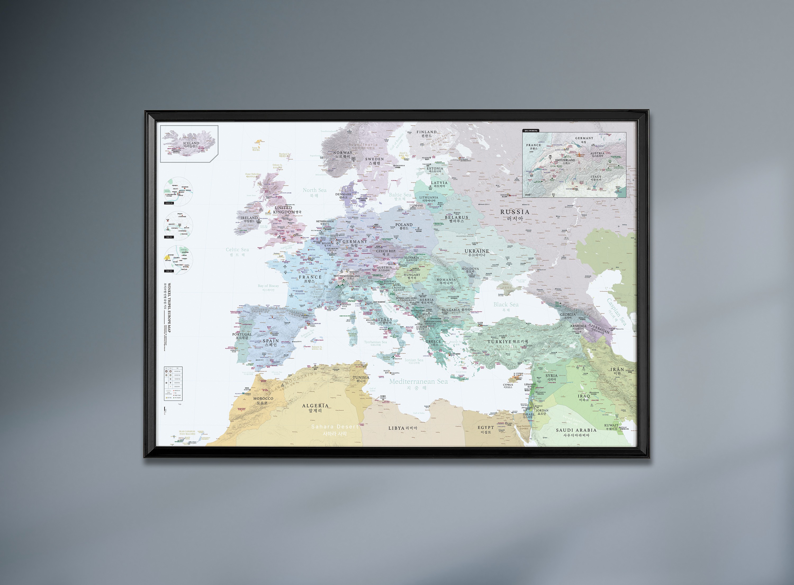 유럽의 여행과 지리를 위한 대형 지도