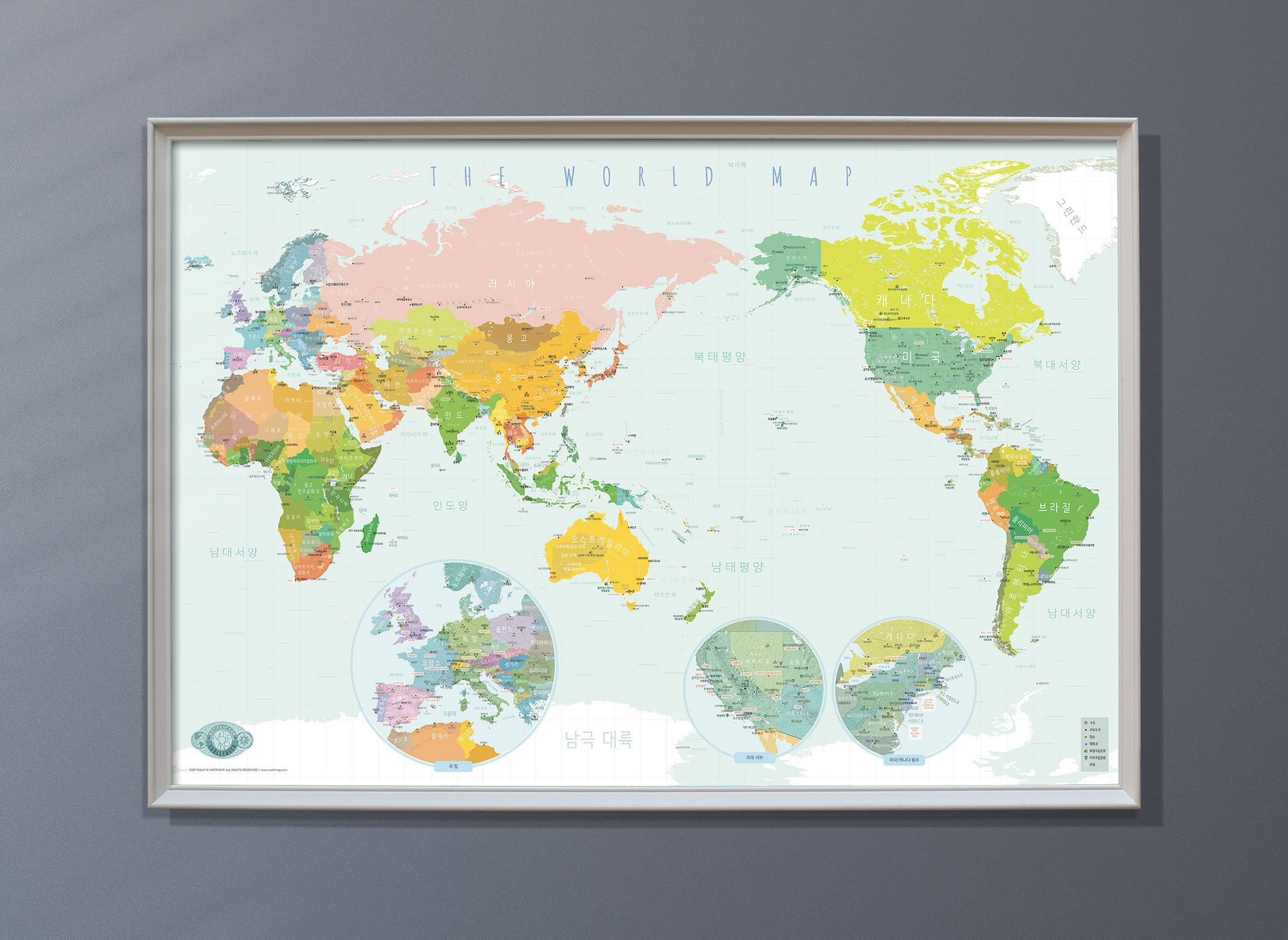 세계사가 있는 태평양 중심 지형 지도 / 밀러도법
