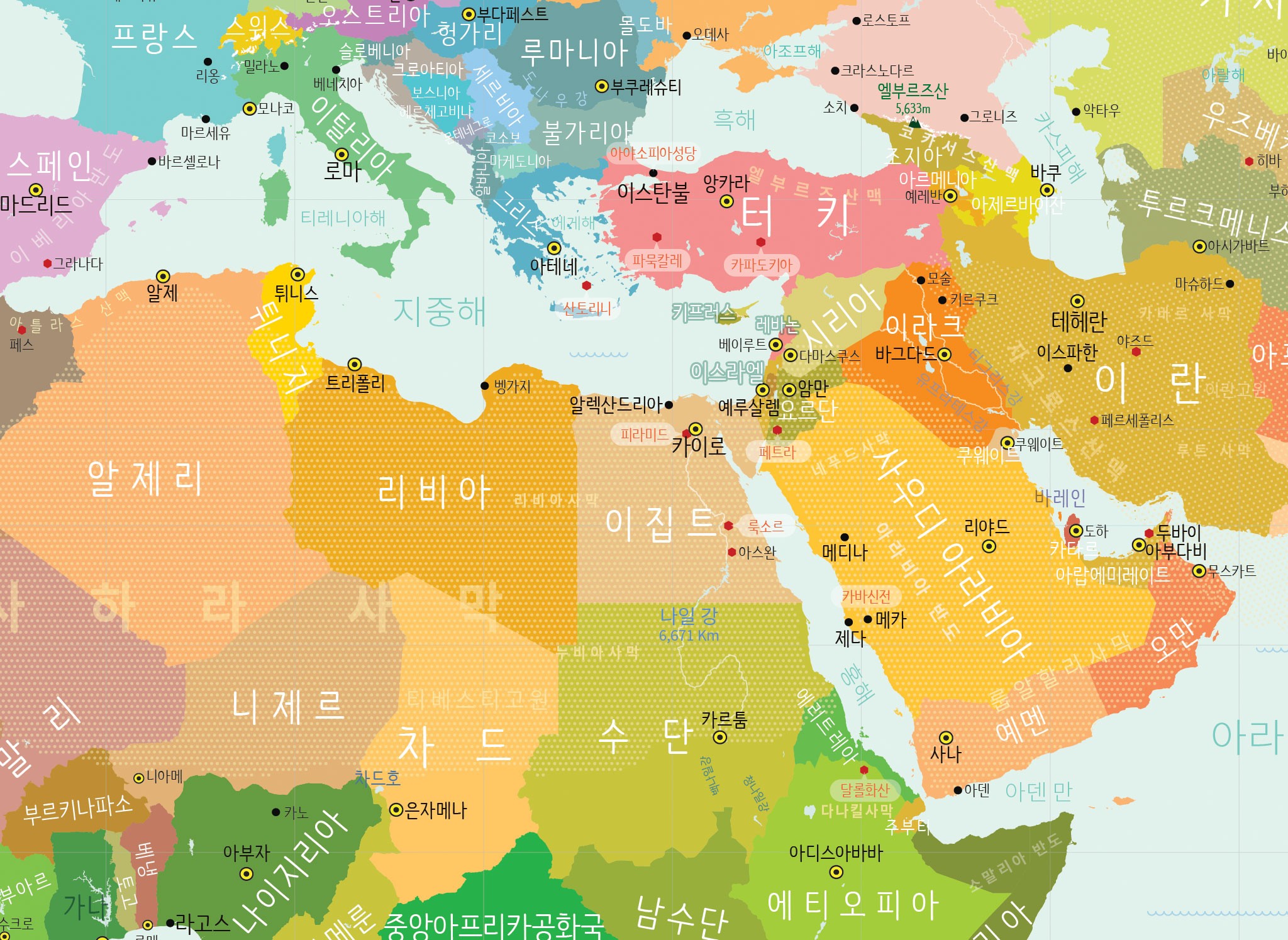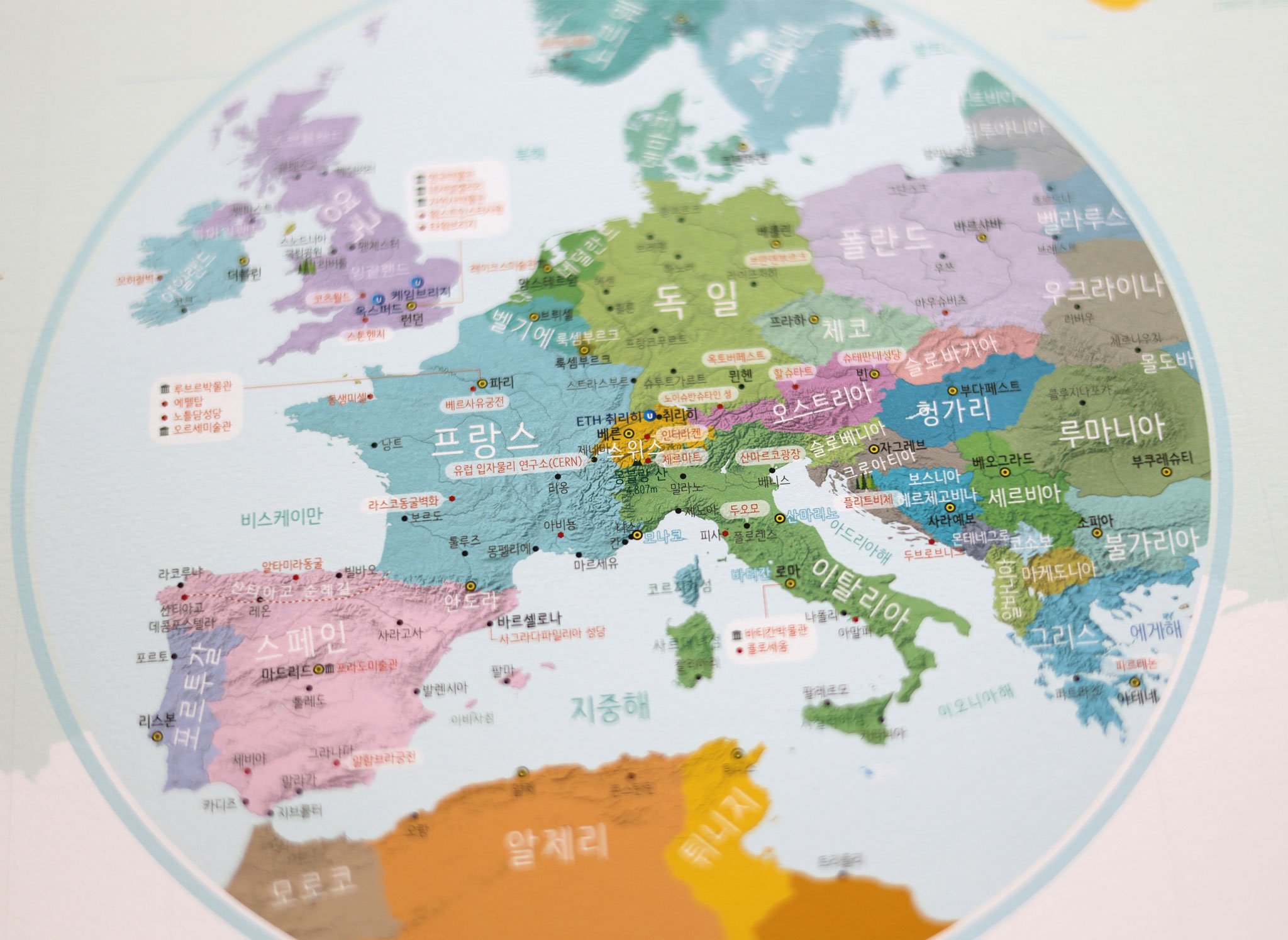 벽에 걸기만 해도 방 안이 환해지는 모티브맵 챌린저 세계지도를 만나보세요. 산뜻한 파스텔톤 컬러 조합 덕분에 학습용 지도를 넘어 마치 인테리어 포스터처럼 공간을 더욱 세련되게 꾸며줍니다. 국가와 도시 이름은 가독성 높은 타이포로 또렷하게 표시되어 있어, 원하는 지역을 순식간에 찾아낼 수 있죠. 또한 지도 위에 국립공원·박물관 등 주요 교육용 콘텐츠를 함께 담아, 학생들의 지리·역사 학습 교재로도 손색이 없습니다. 하단 여백에는 유럽과 미국 동·서부 확대지도를 배치해, 옥스퍼드·아이비리그·스탠퍼드 등 세계 유수 대학의 위치까지 한눈에 확인할 수 있으니, 자녀의 진로 탐색 자료로도 제격입니다. 모티브맵 챌린저 세계지도 하나로 인테리어와 교육, 두 마리 토끼를 모두 잡아보세요!