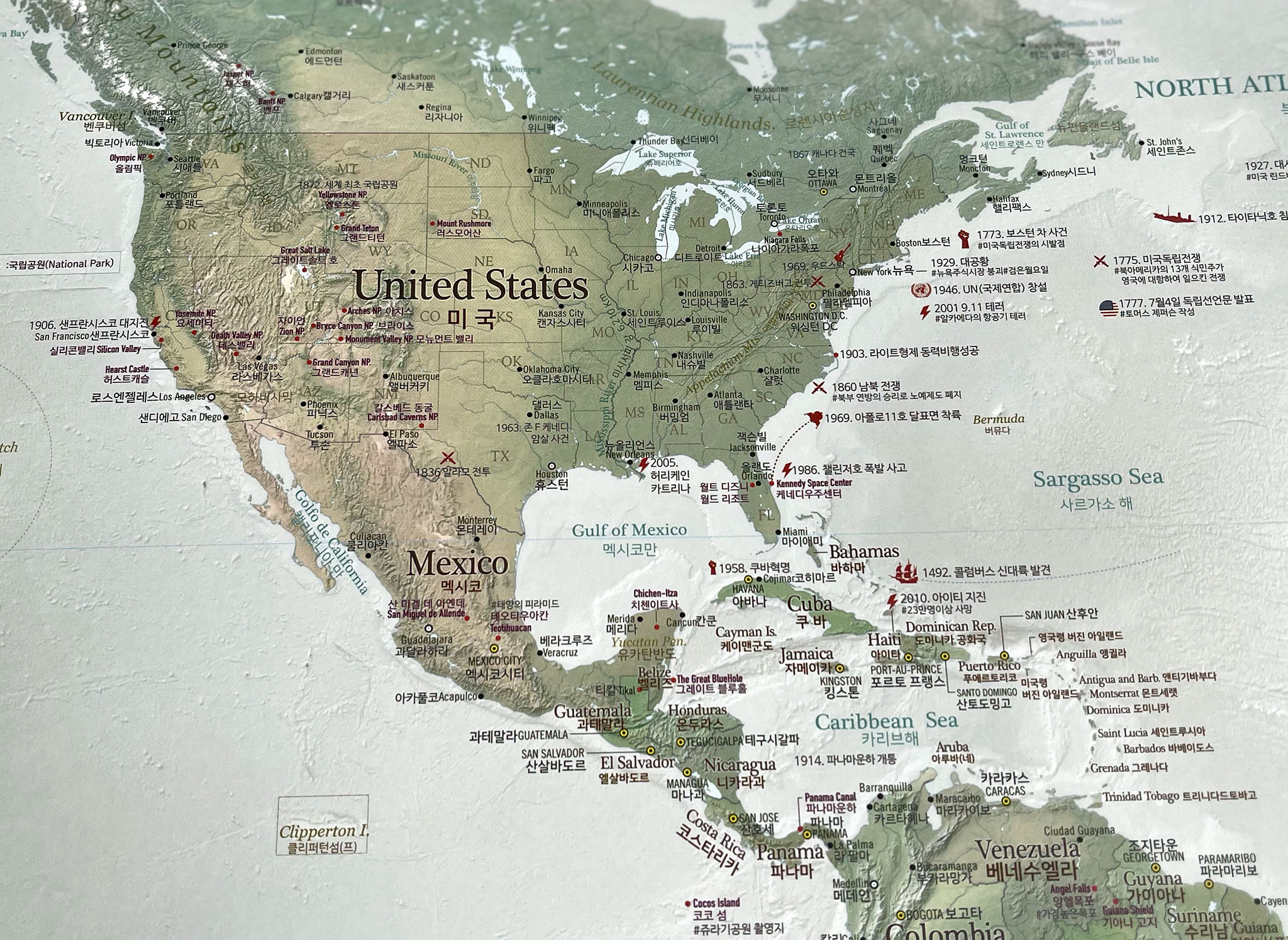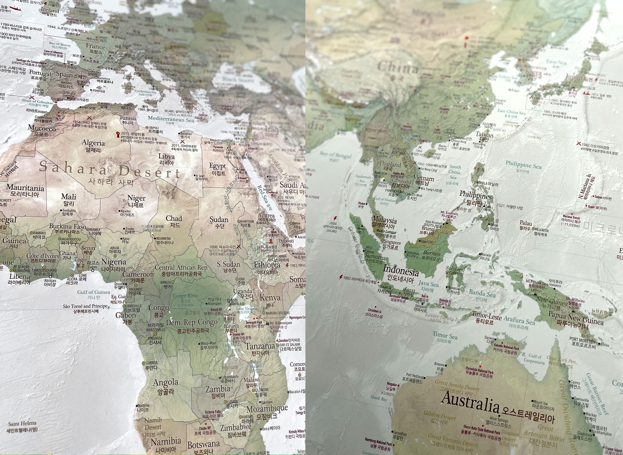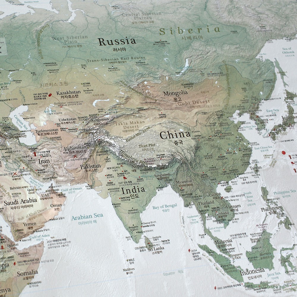 “콜럼버스가 처음 닿은 신대륙은 쿠바섬이고, 아우슈비츠 수용소는 독일이 아닌 폴란드에 있다는 사실, 혹시 알고 계셨나요?” 익스플로러 세계지도는 이렇게 세계사 속 주요 제국의 확장 경로, 탐험 항로, 전투 현장 등 핵심 사건들을 지도 위에 그대로 옮겨 생생한 현장감을 선사합니다. 여기에 3D 음영으로 구현된 평야·산맥·해협 등 입체적 지형 표현은 “이 지형이 어떻게 정치·문화적 경계를 만들었을까?”라는 역사적 맥락을 이해하게 해 주며, 단순 과거사 나열을 넘어 “이 지형이 내일의 국제 관계에는 어떤 변화를 가져올까?”라는 통찰로도 확장됩니다. 과거를 읽고, 오늘을 이해하며, 내일을 상상하는 역사의 창으로 익스플로러 세계지도를 경험해 보세요.