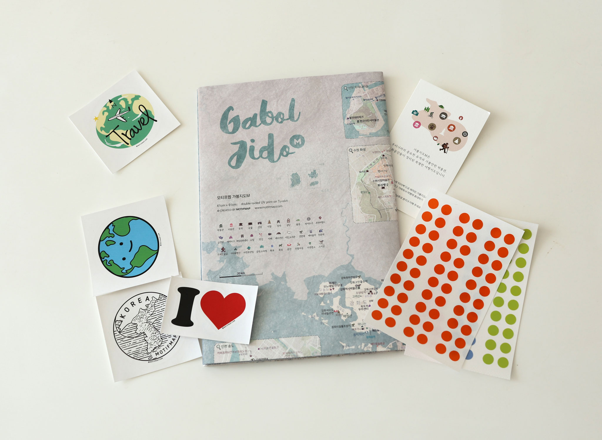 가볼지도M은 내구성이 뛰어난 듀폰 타이벡(Tyvek) 위에 전국·서울·제주도 지도를 양면 UV 특수인쇄로 담아낸 여행 지도입니다. SNS·여행 리뷰·전문 서적·통계청 데이터·박물관 자문 등을 통해 광고 없이 검증된 명소만을 선별했습니다. 산의 높이와 계곡 흐름까지 살린 정교한 입체 지형 표현, 100대 명산·둘레길·올레길 추천 트래킹 코스, 제주 올레·한라산 둘레길·핫플레이스 안내, 경주·목포·강릉 등 14개 대표 여행지 확대지도, 120개 투명 스티커로 나만의 지도를 꾸밀 수 있는 다채로운 기능을 한 장에 담았습니다.