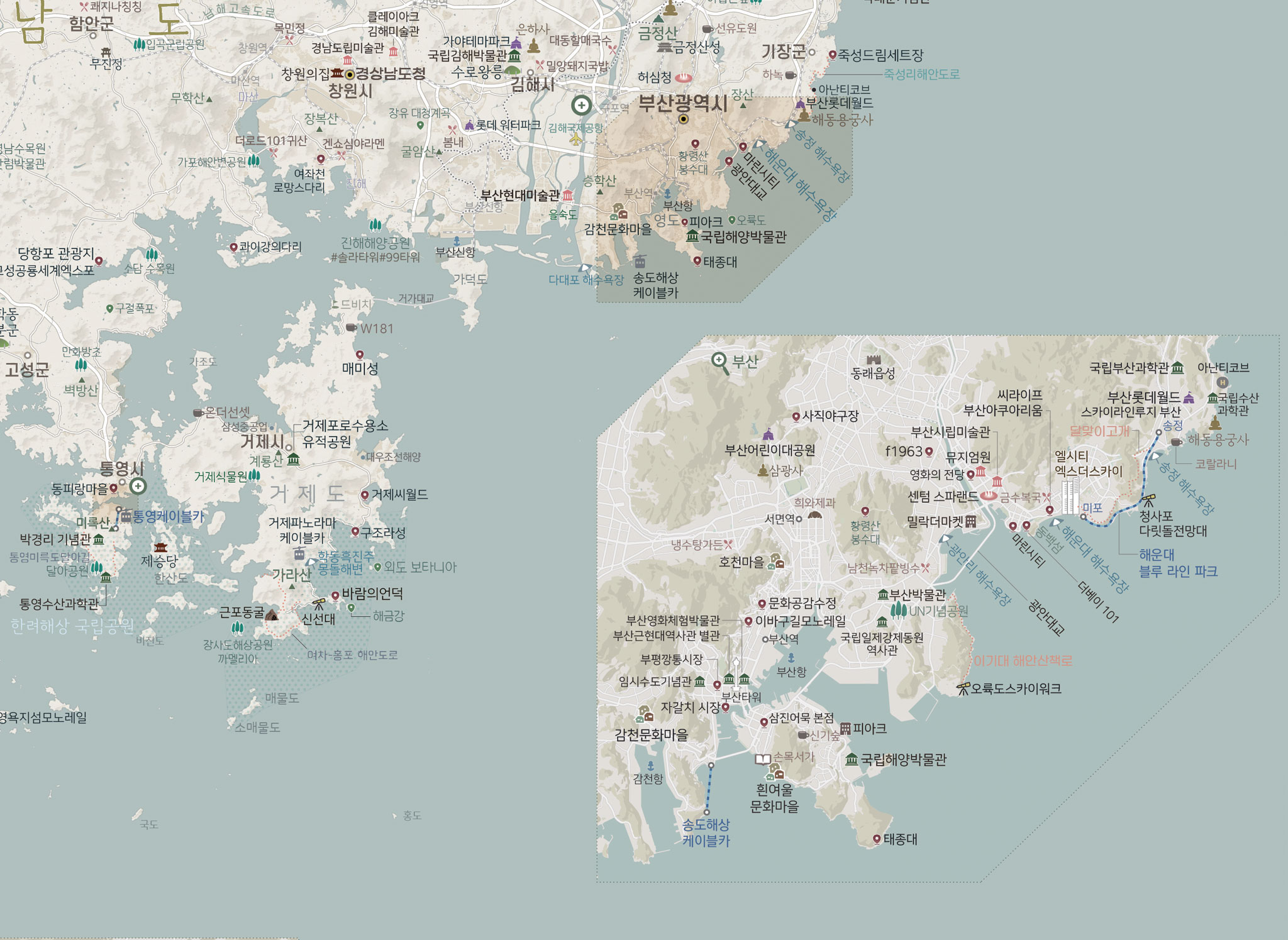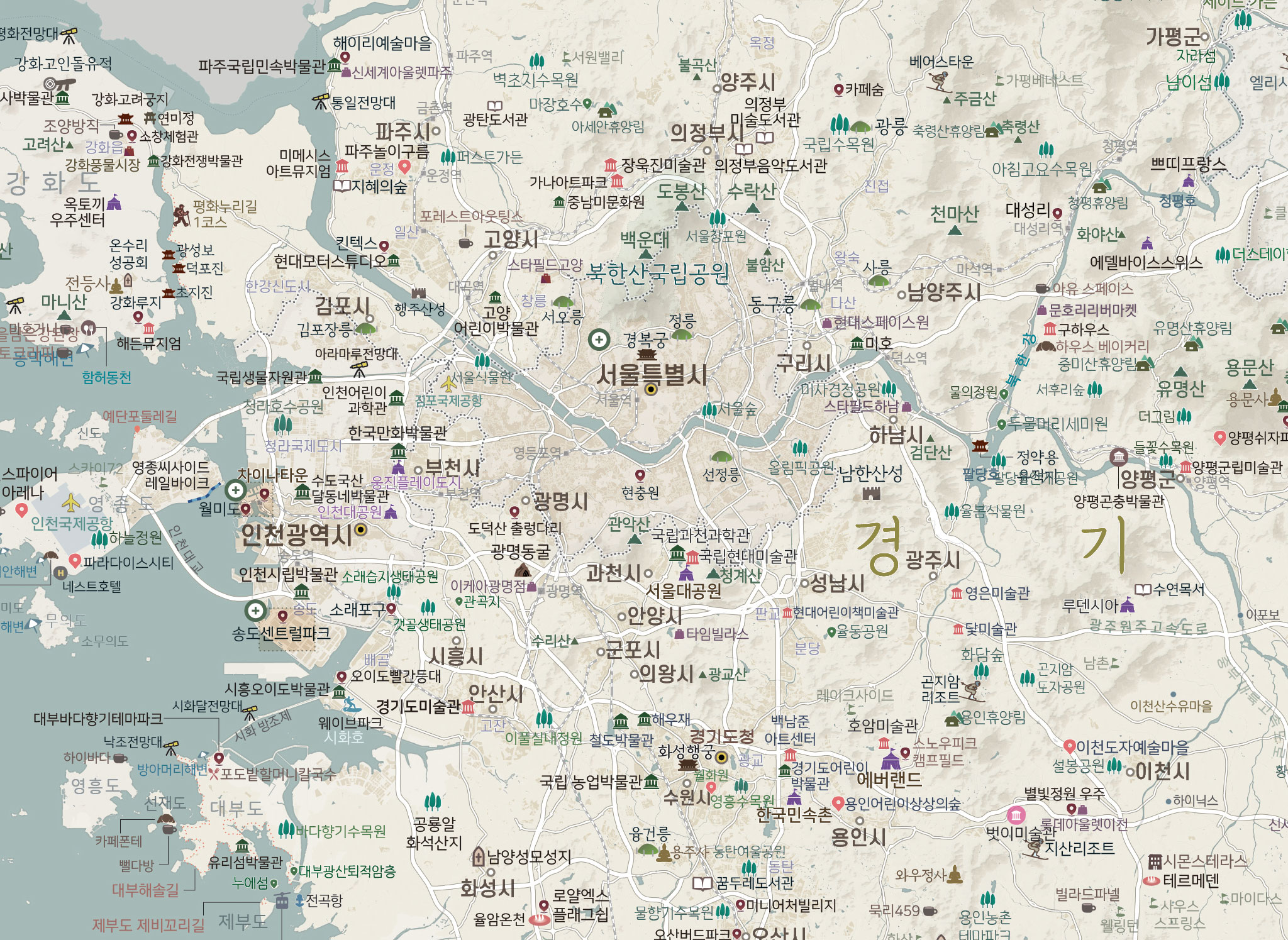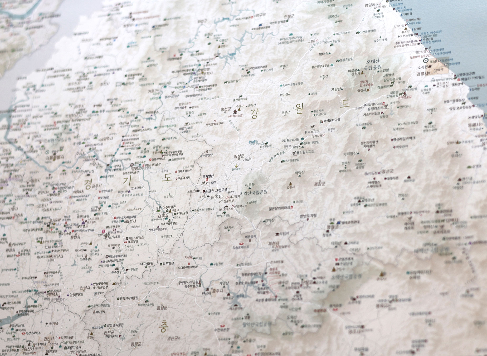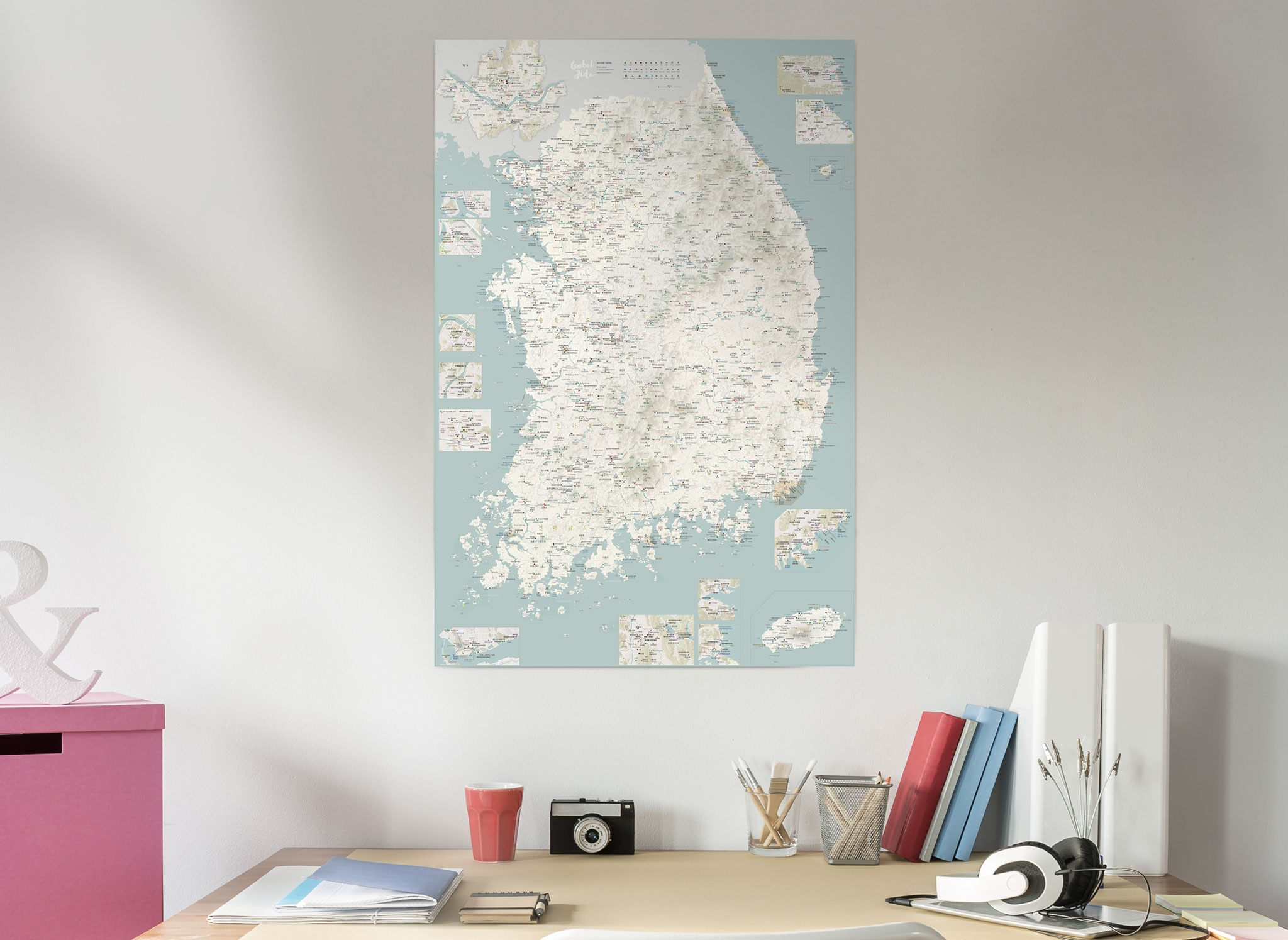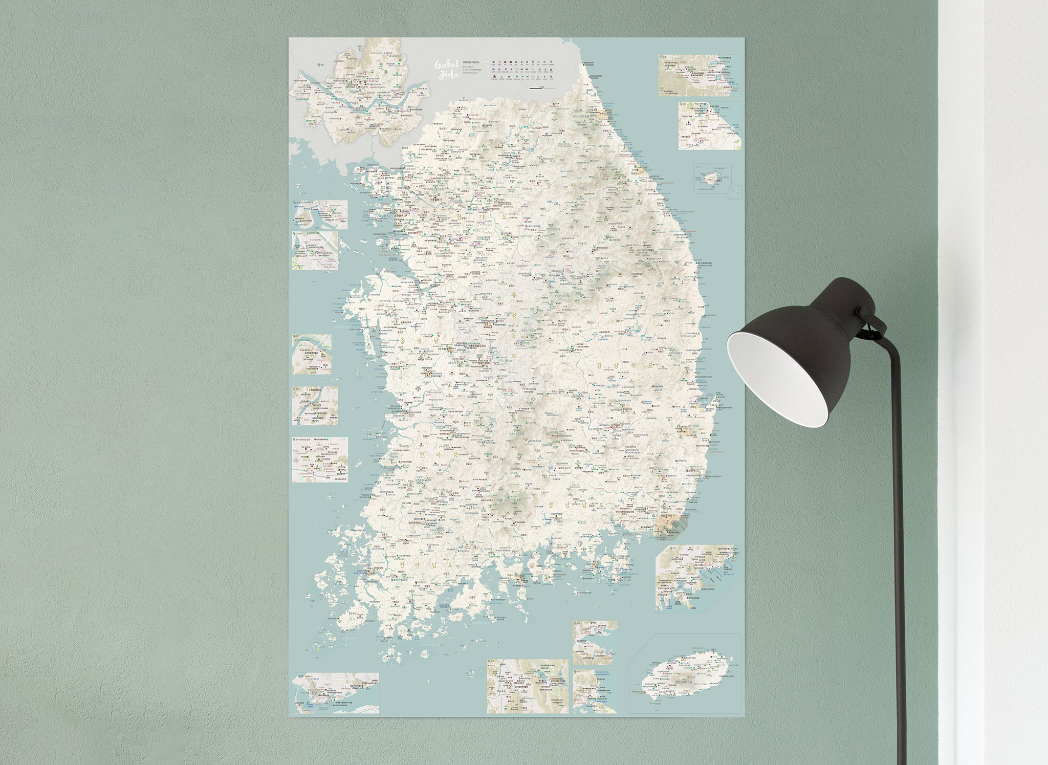 촌스러운 도로행정 지도는 버리세요! 아이콘과 픽토그램으로 보기 쉽게 디자인된 전국 가볼지도는 차분한 파스텔톤 컬러로 공간에도 잘 어울립니다.